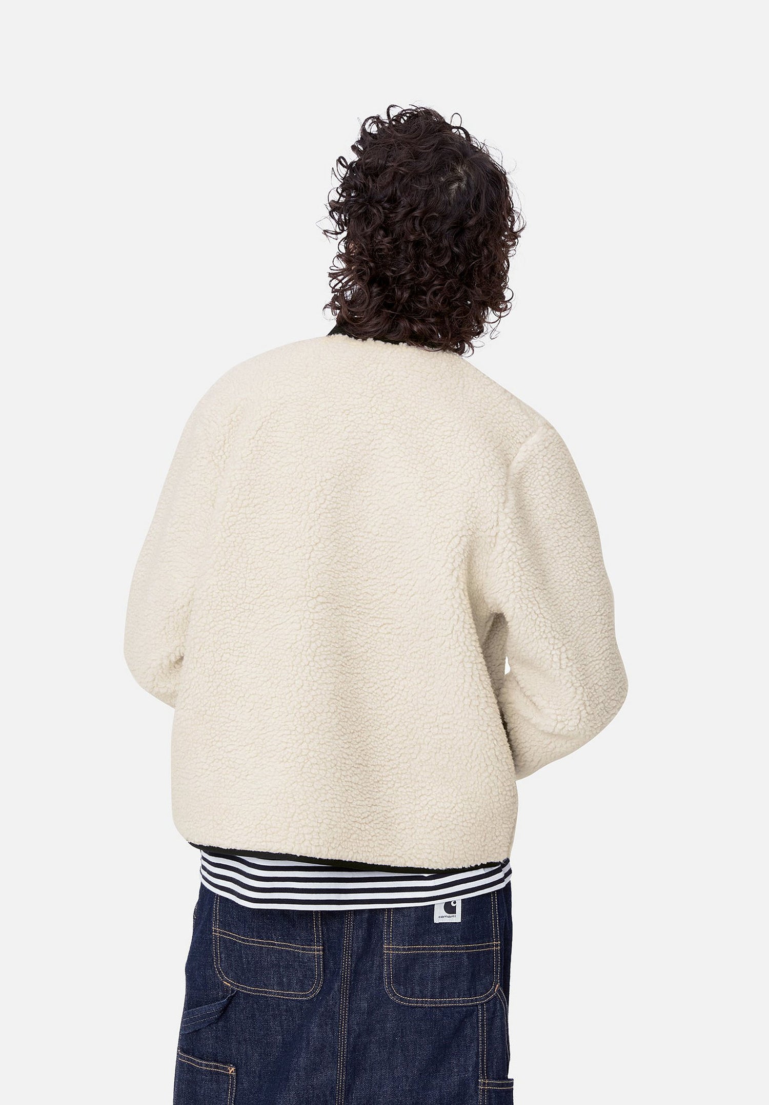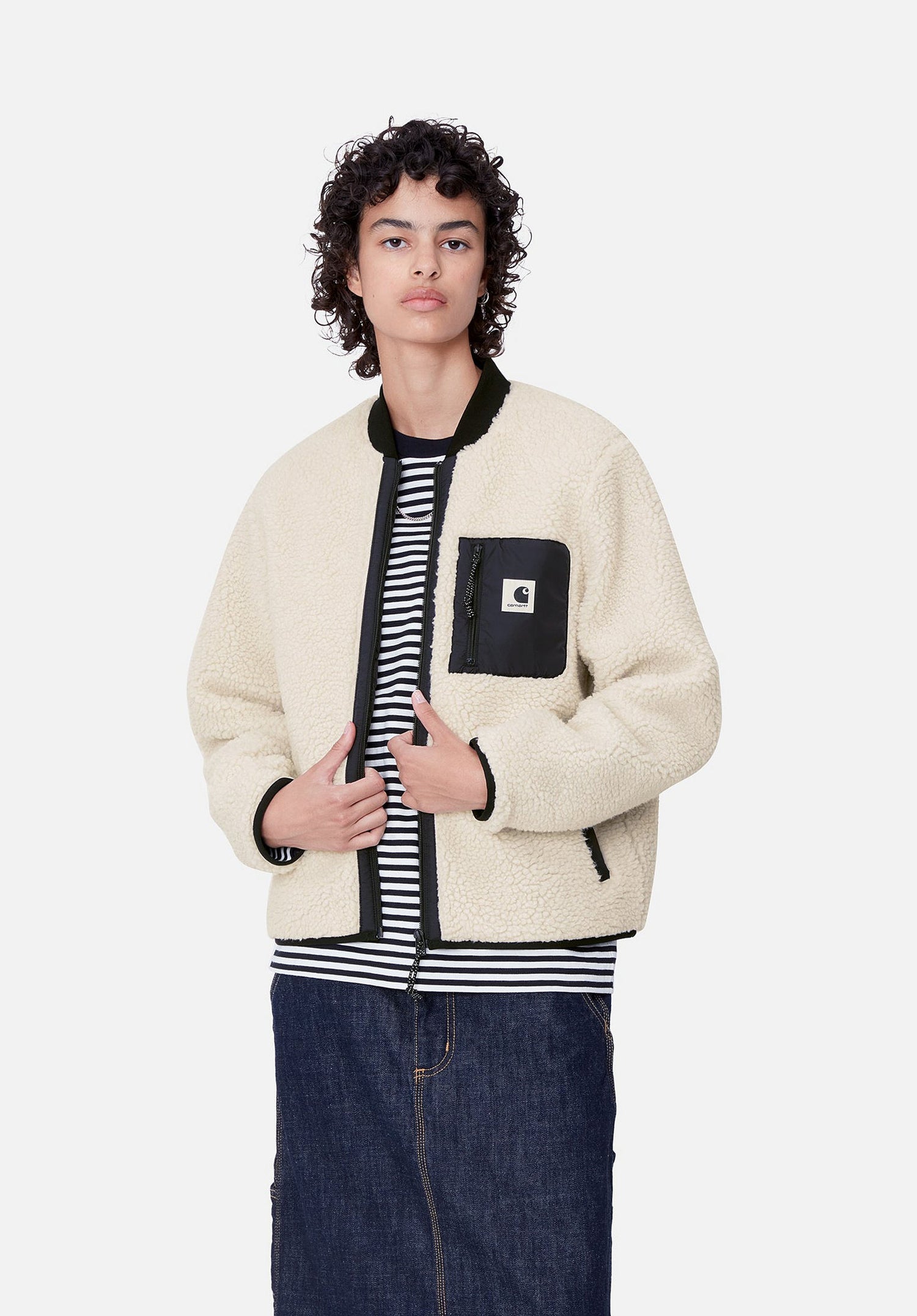Die Carhartt WIP Janet Liner - gerade geschnittener Teddy Fleece Style mit Rippstrick-Kragen und Steppfutter. Cozy af!
