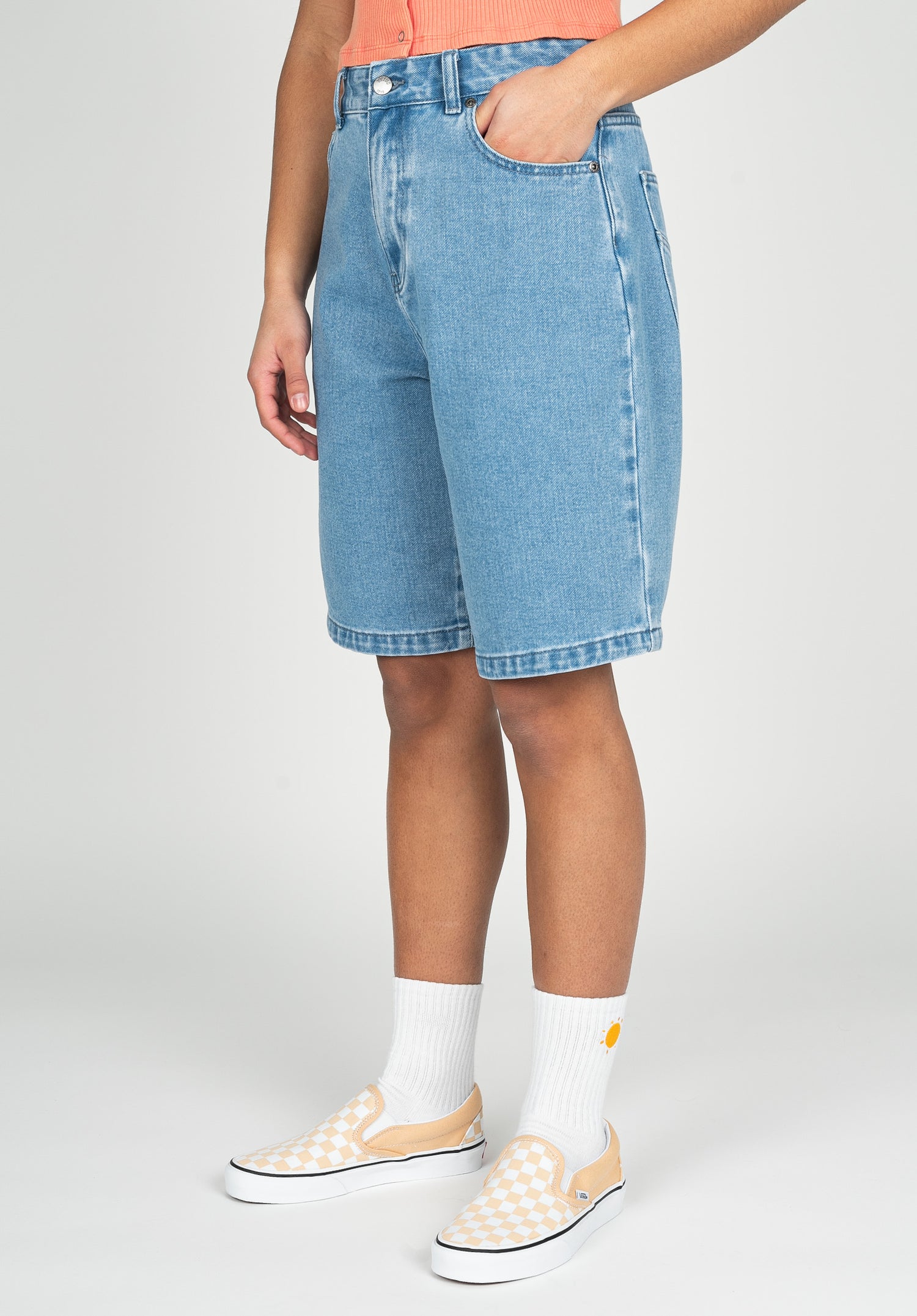 Die Duana Jeans-Short von TITUS überzeugt mit lässigen Vibes und sorgt auch an heißen Sommertagen für eine Abkühlung.