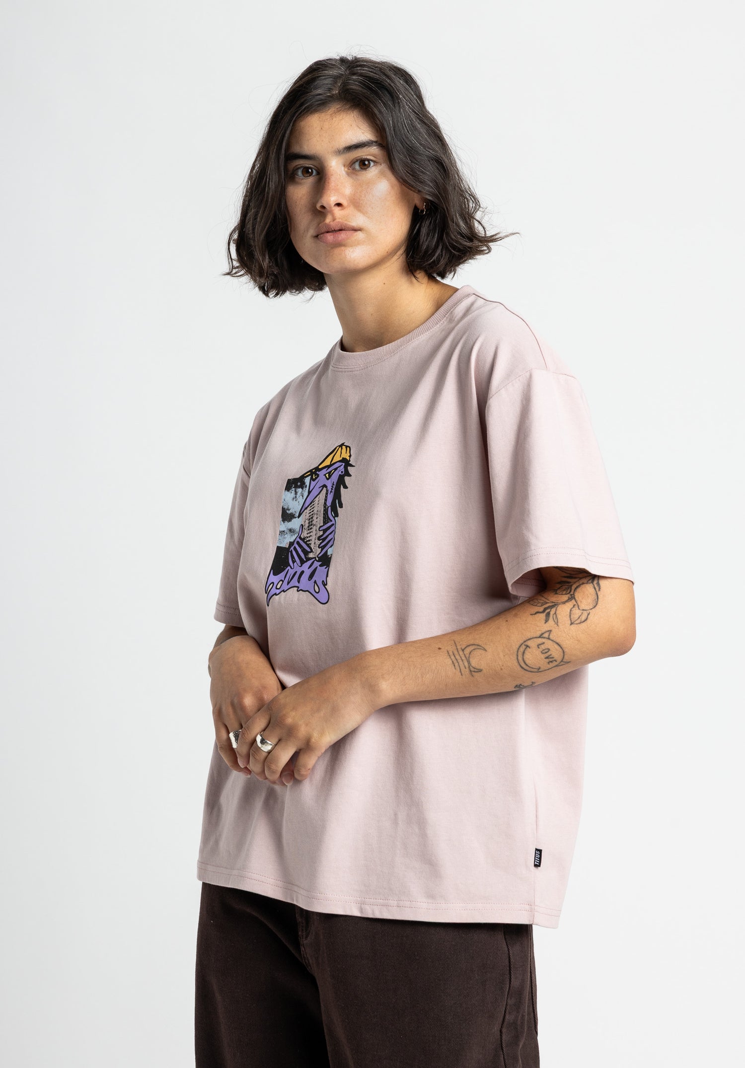Mit dem Mimmo Shirt bringt TITUS Street-Art auf Baumwolle. Der markante Comic-Style-Print überzeugt durch rough gezeichnete Lines und urbane Attitüde – perfekt für alle, die ein klares Statement setzen wollen. Ein Shirt, das Streetwear mit Kunst verbindet und dich sowohl im Alltag als auch auf deiner nächsten Skate-Session begleitet.